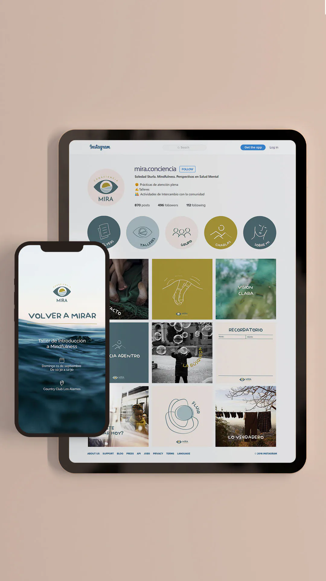 Mira Conciencia is a space dedicated to mindfulness and mental health perspectives. In this branding, the color palette stands out and contrasts with the subtlety of the hand-drawn linear illustrations to create a calming space based on its own identity. To see more about this project, click here.
